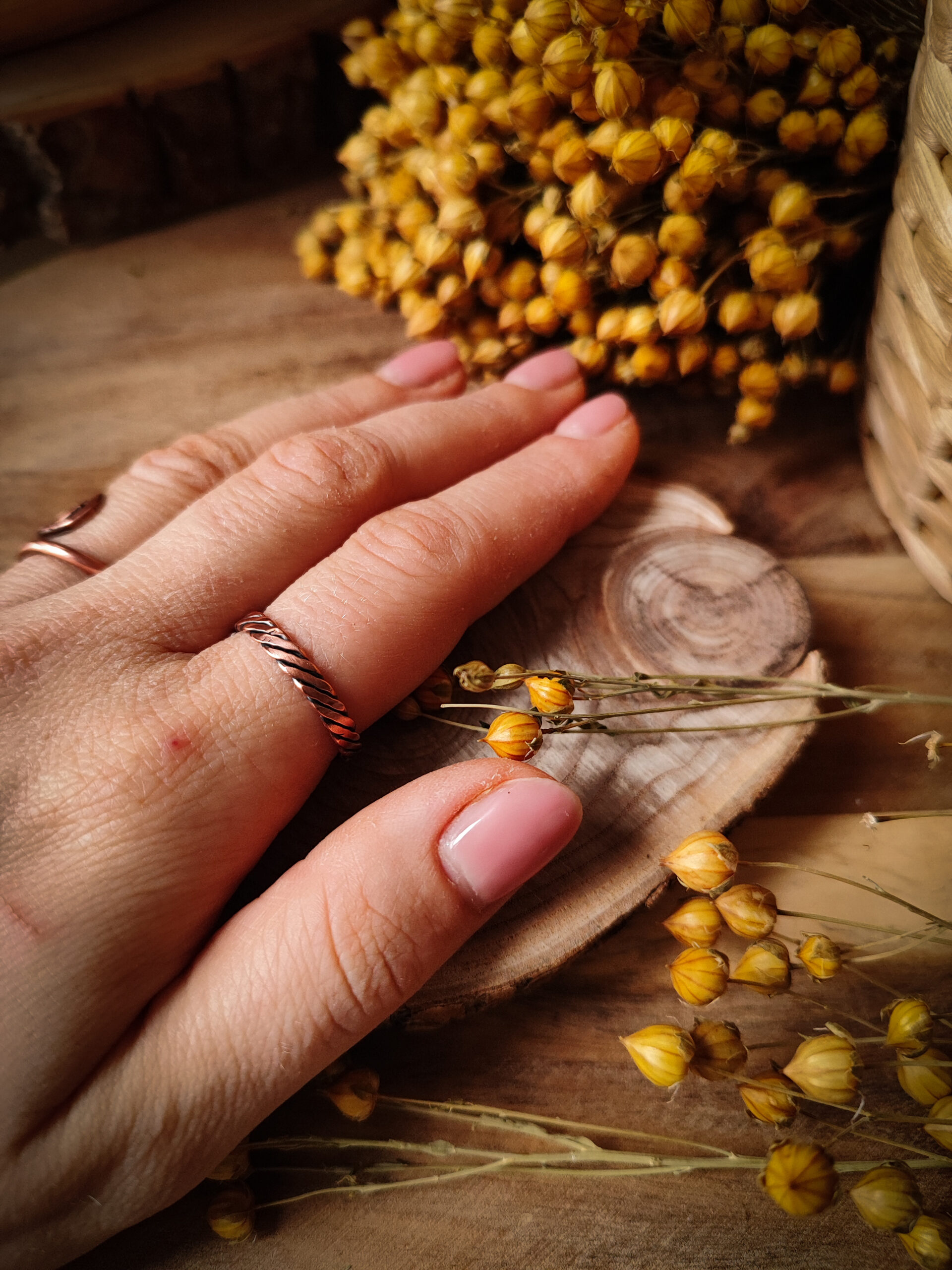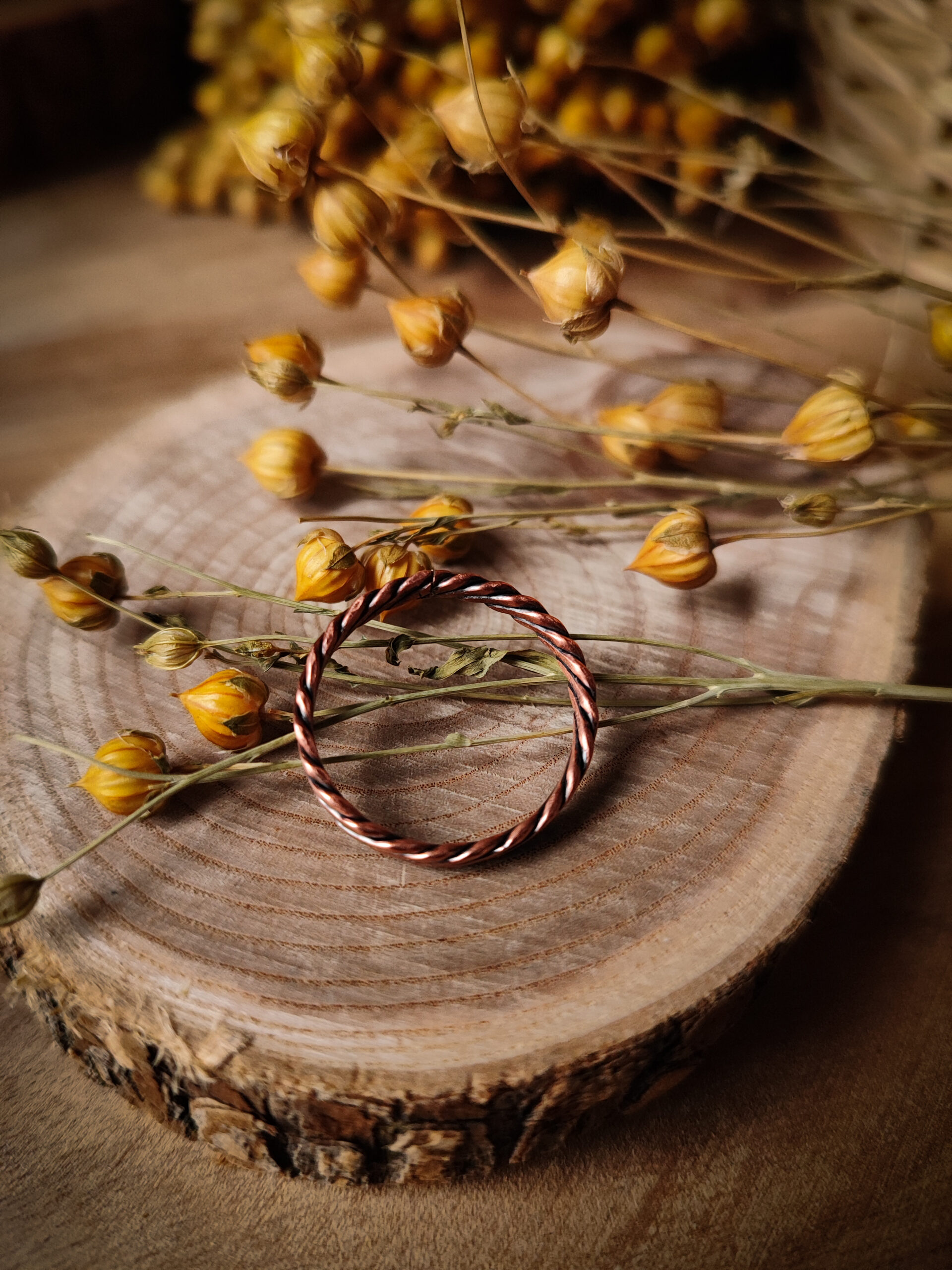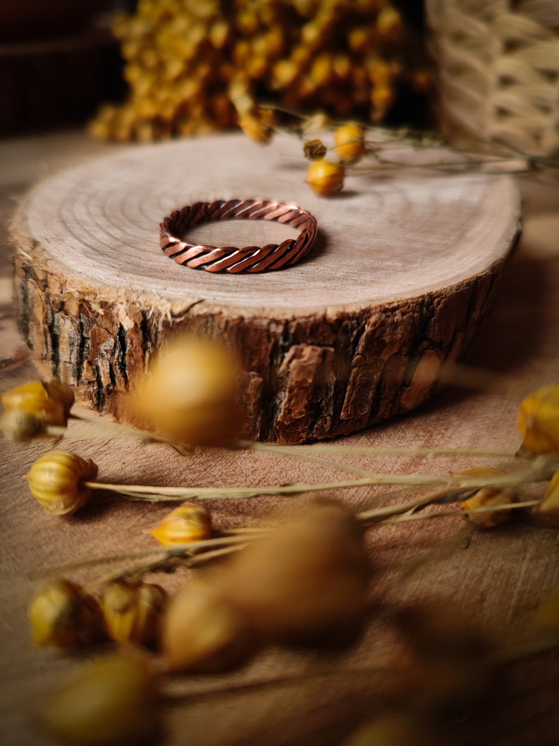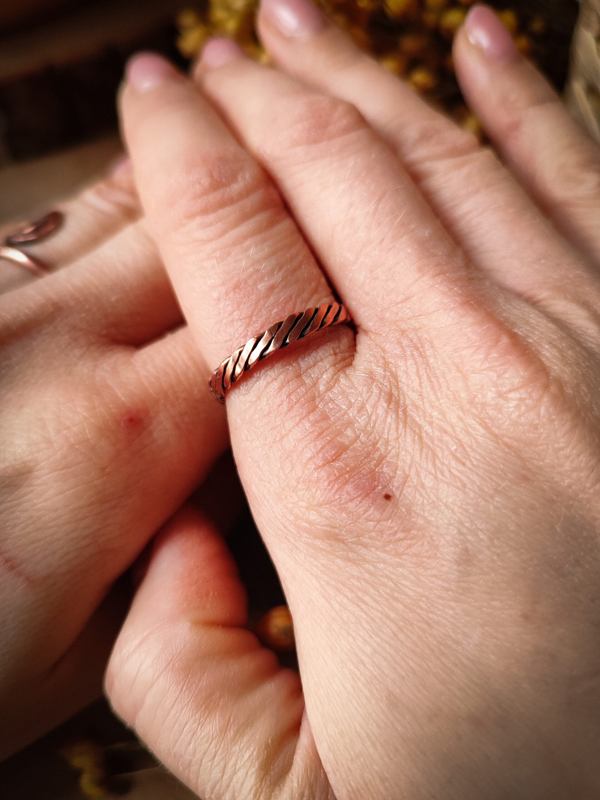 Oksydowana miedziana obrączka to propozycja dla osób lubiących klasykę w nowoczesnej wersji.