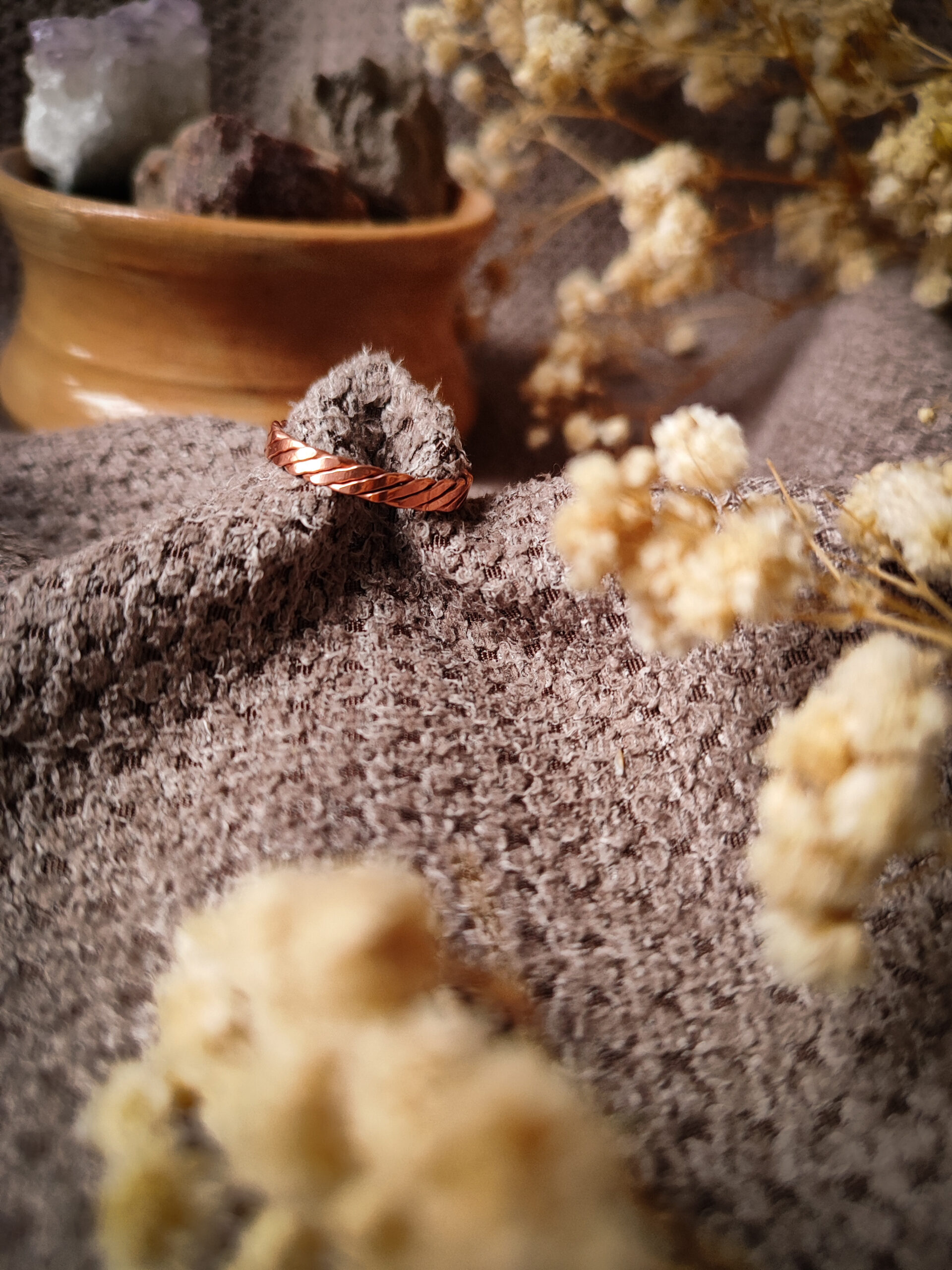 ♥ biżuteria miedziana „żyje” – jej kolor zmienia się z czasem. Możesz czyścić ją ściereczką do srebra, lub użyć delikatnego roztworu kwasku cytrynowego do oczyszczenia biżuterii, a następnie wypłukać ją w letniej wodzie i wysuszyć
